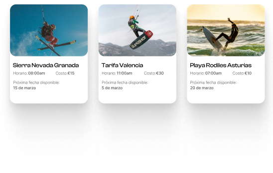 Desde las montañas nevadas hasta las playas soleadas, te llevamos al corazón de la acción. Descubre actividades de esquí, snowboard, surf, kitesurf, y mucho más. Cada estación trae nuevas aventuras y aprendizajes.